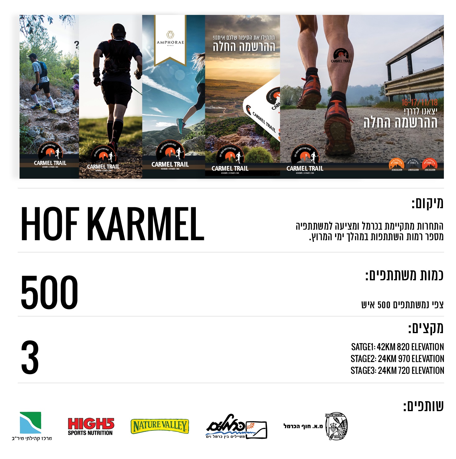 אירוע ראשון מסוגו בארץ אשר כולל 100 ק"מ בשלושה ימי ריצה, בכל יום שלב. הריצה התקיימה ברחבי מועצה אזורית חוף הכרמל ועברה בכל אזוריה היפים